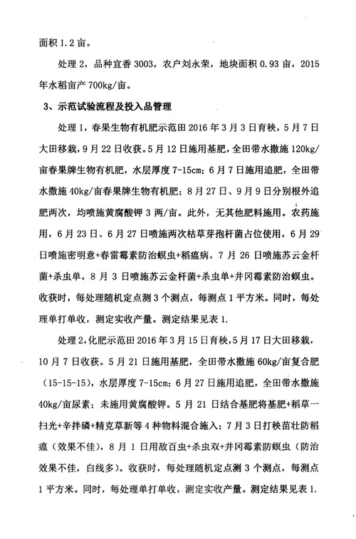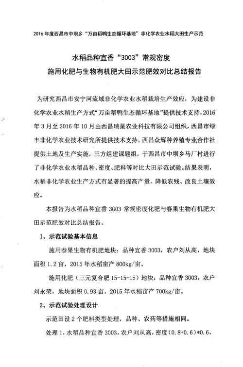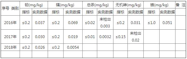 2016年—2018年西昌中坝乡三千多亩水稻用多功效生物肥后的重金属磨练效果