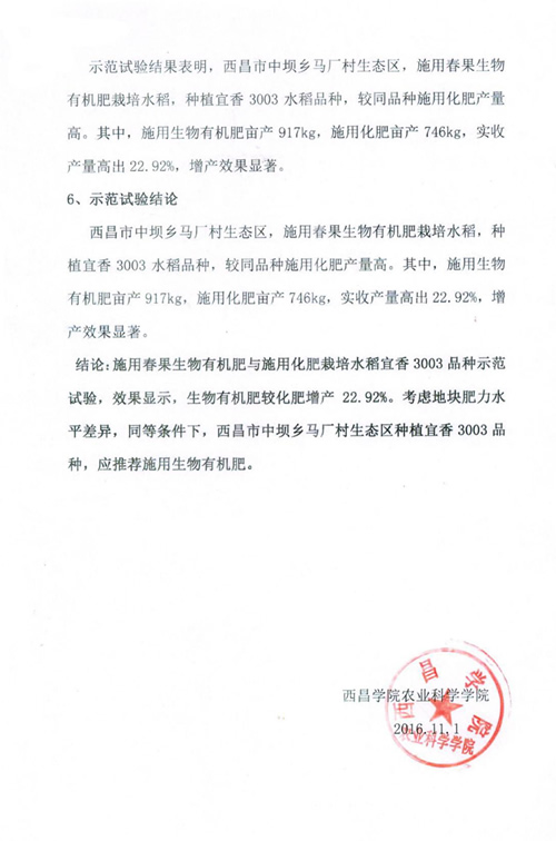 多功效生物有机肥料试验情形,,,,,能快速改良被污染的土壞,,,,,解决农村禽畜粪便的情形污染,,,,,降解农残包管食物安 全,,,,,完全可以替换化肥,,,,,镌汰和阻止对土地的化学污染,,,,,大幅镌汰作物病虫害、镌汰农药使用量从而镌汰农药对土地和食物的污染。。。这一产品在阿坝、西昌、浦江等地3600亩农田的使用,,,,,并经相关行业*和用户历时三年多的验证,,,,,获得认可。。。现已被四川省治理荒原化基金会和阿坝州政府作为治理草原沙化、退化的专用肥料。。。对此,,,,,电视台已作多次专题釆访和报导。。。