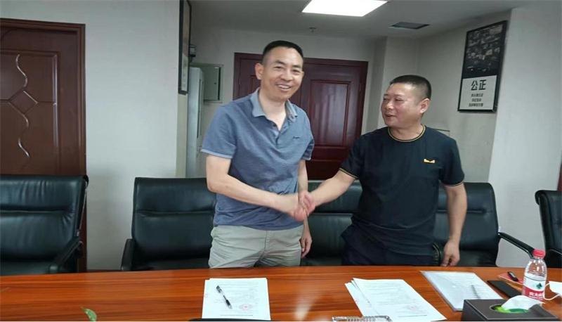 图为南宫国际情形刘董事长和双龙农牧相助社曹总司理